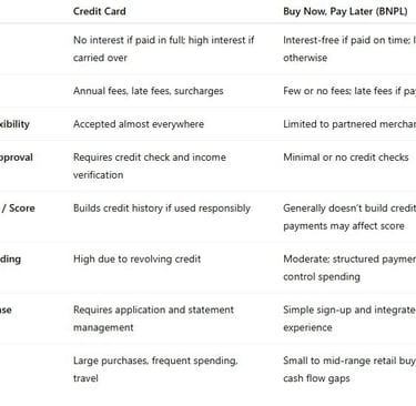 Side-by-Side Comparison: Credit Card vs BNPL